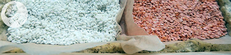 Suche składniki wymieszać razem. Od białek oddzielić żółtka. Białka schować do lodówki, przydadzą się do bezy. Miękkie masło wyrobić z żółtkami i mąką na w miarę jednolitą masę. Zagnieść całość w kulkę, owinąć folią spożywczą i schłodzić w lodówce minimum godzinę. Prostokątną dużą formę wyłożyć papierem do pieczenia. Schłodzone ciasto rozprowadzić równomiernie na blaszce, tak by również na boku był rant z ciasta. W tym celu warto na wierzch położyć kawałek papieru do pieczenia i wysypać kulki ceramiczne (modne i trendi piekareczki na pewno mają takie cuda) lub jak Hońka, której zabrakło grochu i fasoli do obciążania. Zatem trzeba było coś wymyślić w zamian. Padło na ryż i soczewicę. Jednak trochę okazały się za lekkie.