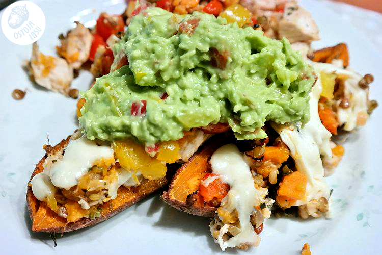 Wyciągnij i przemieszaj warzywa, a filet z kurczaka pokrój w paski czy kostkę i ponownie wymieszaj. Taką mieszanką wypełnij łódeczki batatowe. Wyjmij mozzarellę z zalewy i pokrój w plasterki i połóż na wierzchu. Ponownie włóż co piekarnika na 3-5 minut, by ser się rozpuścił. Podawaj ciepłe np. w towarzystwie ulubionego przeze mnie guacamole. Z guacamole wszystko jest przecież lepsze : )