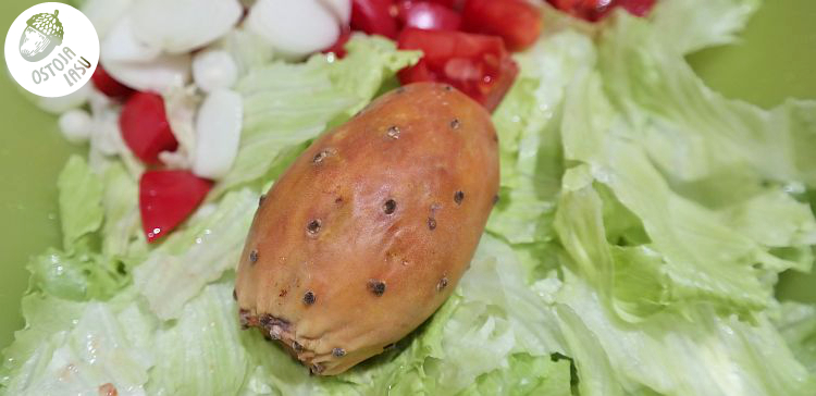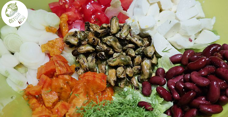 Przygotowanie:Warzywa i owoce dokładnie myjemy. Uważajcie na opuncję, bo bestia jest kolczysta. Należy ją obrać ze skórki, uważając właśnie na te kolce, by nam nie wpadły do sałatki. To będzie najcięższa robota przy tej sałatce. Resztę kroimy wg uznania. Fasolę zawsze odcedzam z zalewy i przelewam wrzątkiem. Jako, że małże są zazwyczaj w oleju, to ten olej zużywam do sałatki. Już więcej przypraw poza świeżym koperkiem nie potrzebuję. Dobrze wymieszać i można jeść od razu, albo dać jej chwilę na "przegryzienie się".