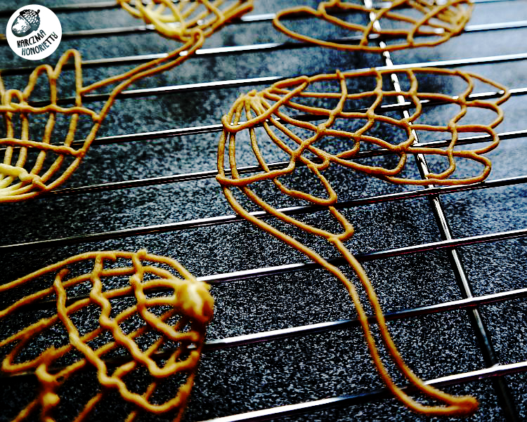 (dobrze pomóc sobie jakimś narzędziem) na papierze do pieczenia. Następnie upiecz je w 180 stopniach, aż się zrumienią. Przełóż na kratkę do studzenia. Udekoruj nimi talerz.