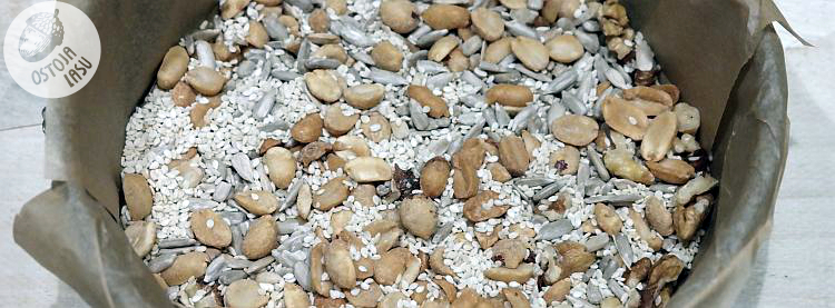 Przygotowanie:Spód małej tortownicy (średnica 18 cm) wyłożyć papierem do pieczenia.Możemy też pokusić się o obłożenie boków. Ciastka pokruszyć i połączyć z ok. 50 g masła, łyżką syropu daktylowego oraz orzechami i odrobiną sezamu. Ciężko podać proporcje, ponieważ każdy orzechy kroi inaczej. Ja najpierw wysypałam je do tortownicy, by zobaczyć ile mi ich będzie potrzeba. Chcemy uzyskać tutaj chrupiący spód naszego sernika o grubości ok. 1 cm. Jeśli wyjdzie nam za dużo mieszanki orzechowej, by ją równo rozprowadzić, to śmiało możemy ją rozłożyć na boki tortownicy. Spód podpiekamy ok 10 minut w piekarniku rozgrzanym do 170 stopni. Po czym odstawiamy do ostygnięcia i zajmujemy się masą serową.