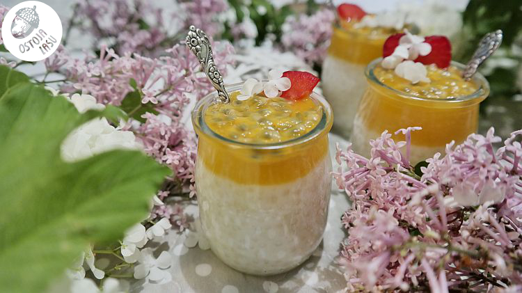 Przygotowanie:Tapiokę wsyp do garnka i zalej mlekiem. Odstaw na minimum godzinę, by napęczniała. Oczywiście możemy sobie ułatwić zadanie i zostawić ją na noc. Po tym czasie dodajemy miód i pastę waniliową.. Dokładnie mieszamy podgrzewając. Doprowadzamy do wrzenia i gotujemy na małym ogniu do momentu, aż perełki tapioki staną się przezroczyste i miękkie. Przekładamy do naszego naczynia na deserek. Mango blendujemy na mus i dokładamy na przestudzony pudding. Na wierzchu dodajemy miąższ z marakui (licząc pół owocu na osobę).