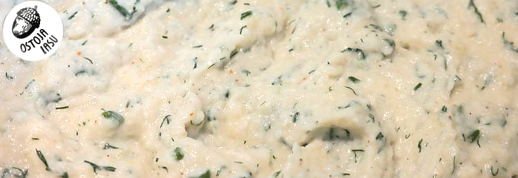 Ugotowany wcześniej kalafior lub taki z wczorajszego dnia, jaki akurat miałam przeciskam przez praskę do ziemniaków lub zwyczajnie rozgniatam widelcem. Wrzucam do rondelka i dolewam odrobinę mleka, tak by uzyskać w miarę kremową konsystencję. Doprawiam solą, pieprzem i świeżo startą gałką muszkatołową. Na koniec dodaję koperek. Próbujcie co jakiś czas, czy smak was zadowala. Nie wszyscy lubią gałkę. Zamiast niej można użyć suszonej, słodkiej papryki czy przyprawy curry.