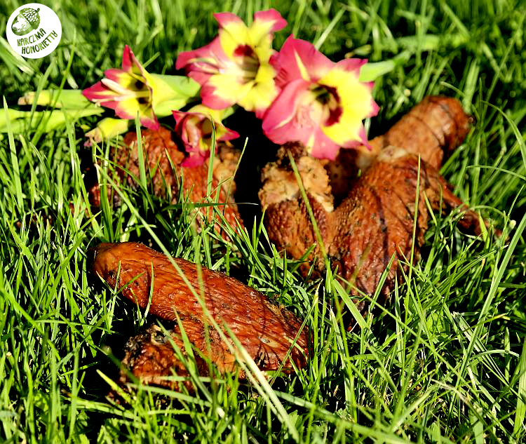 Przygotowanie:Skrzydełka umyć pod bieżącą wodą i dokładnie osuszyć papierowym ręcznikiem. Przygotować mieszankę peklującą: łyżka oregano (polecam podgrzać na suchej patelni), soli jodowanej i peklosoli) - wymieszać i natrzeć mięso. Można ponakłuwać go ostrym widelcem. Odstawić do lodówki na minimum dobę. Wędzić 2 - 3 godziny w temperaturze 50 stopni, aż do uzyskania upragnionego koloru.