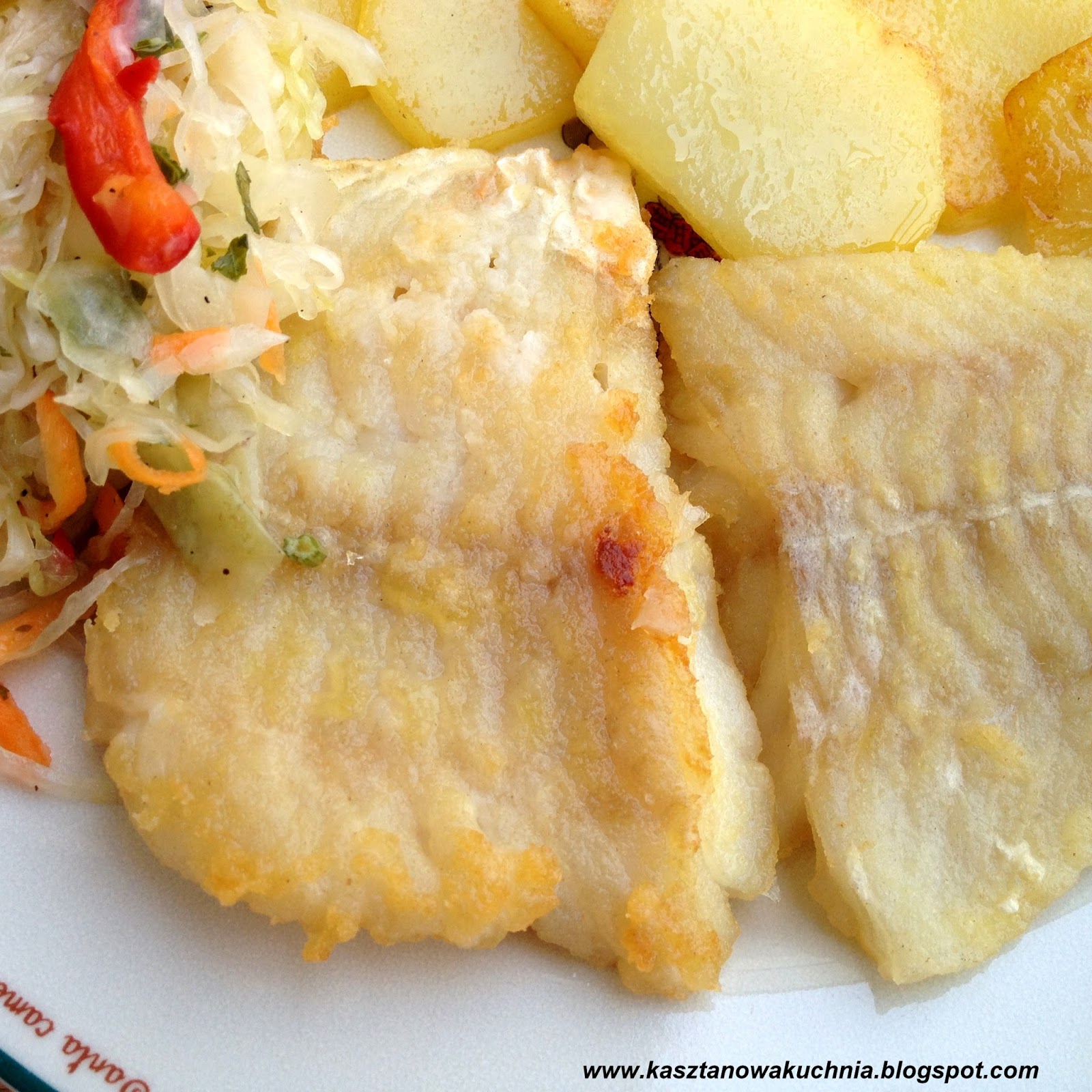 Dziś zapraszam na smażonego dorsza, którego podałem ze smażonymi ziemniakami i surówką z kiszonej kapusty. Jednak w prawidłowy sposób smażonego dorsza należy podawać na papierowych tackach i z plastykowymi sztućcami, ponieważ z papierowej tacki bardziej smakują (oczywiście z dodatkiem frytek i surówki).