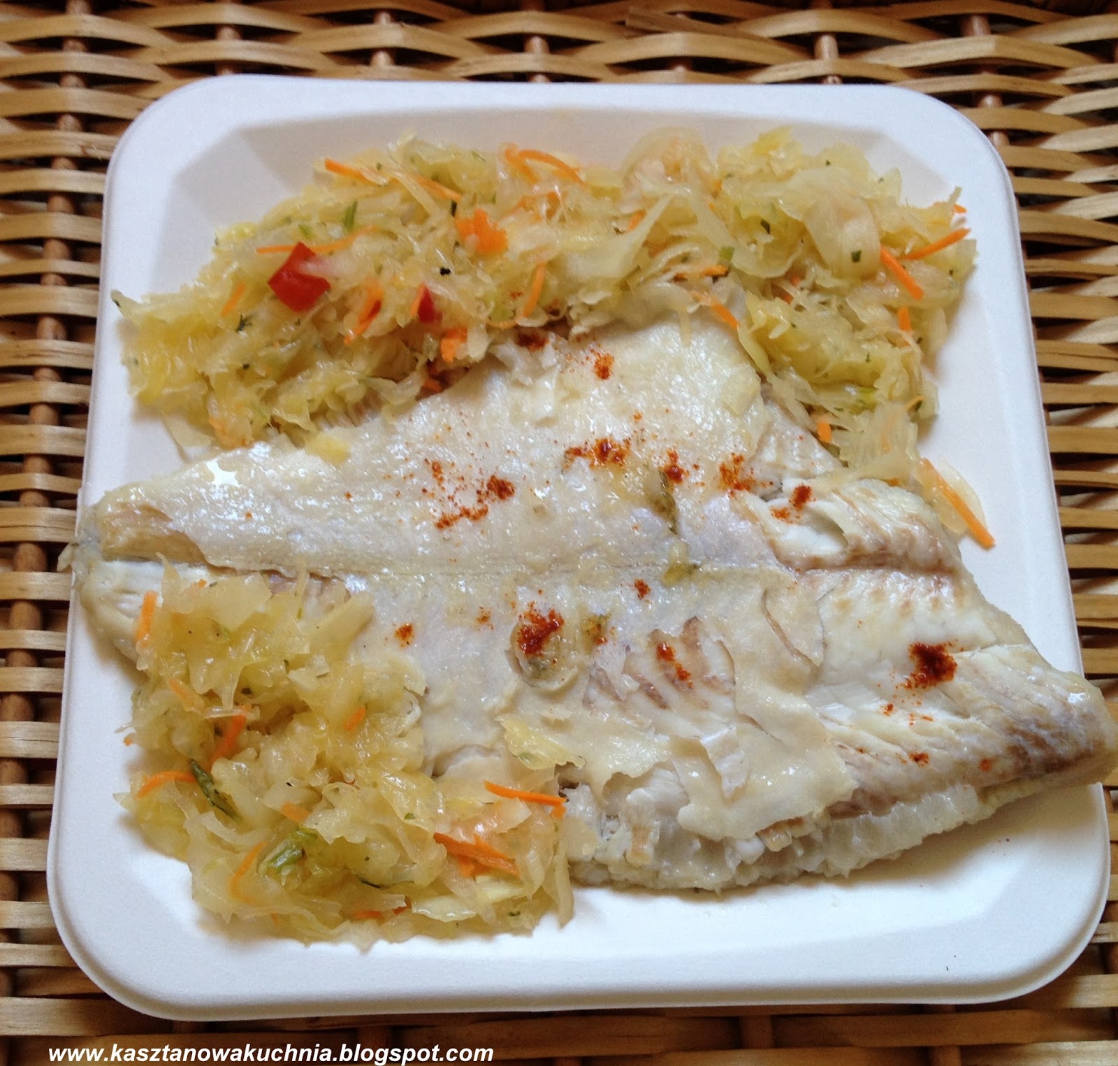 Dziś zapraszam na smażoną flądrę, którą podałem z surówką z kapusty kiszonej i papryki oraz oczywiście w prawidłowy sposób, w jaki podajemy flądrę, czyli na papierowych tackach i z plastykowymi sztućcami, ponieważ z papierowej tacki bardziej smakują (oczywiście także z dodatkiem frytek).