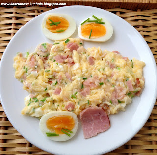 Cześć =) Jajka, to jeden z najbardziej wartościowych i smakowitych produktów żywnościowych. Można z nich wymyślać nieskończone ilości coraz to innych dań i kombinacji smakowych. Dziś zapraszam na jajecznicę na maśle, z dodatkiem szynki i szczypiorku.