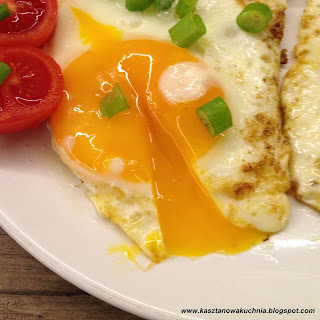 Jajka należy wbijać z minimalnej wysokości, na bardzo dobrze rozgrzany tłuszcz, żeby nie rozpłynęły się po patelni.