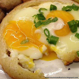 Jajka należy wbijać z minimalnej wysokości, na bardzo dobrze rozgrzany tłuszcz, żeby nie rozpłynęły się po patelni.
