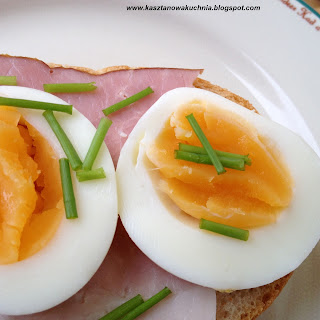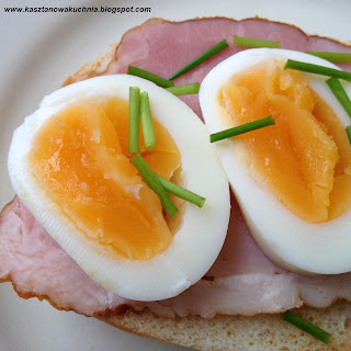 Dziś zapraszam na kanapkę z szynką, jajkiem na półtwardo i szczypiorkiem.