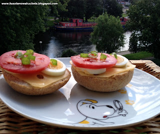 Moja dzisiejsza kanapka, to bułka z serem, jajkiem i pomidorem. Bardzo lubię to połączenie i Was również zachęcam do zrobienia takiej kanapki!