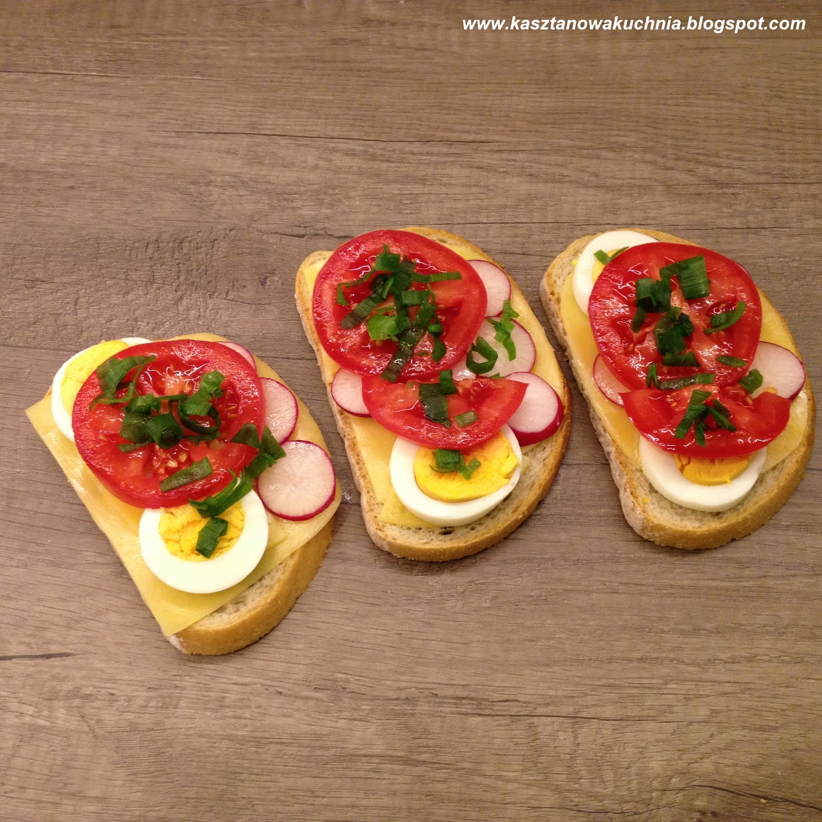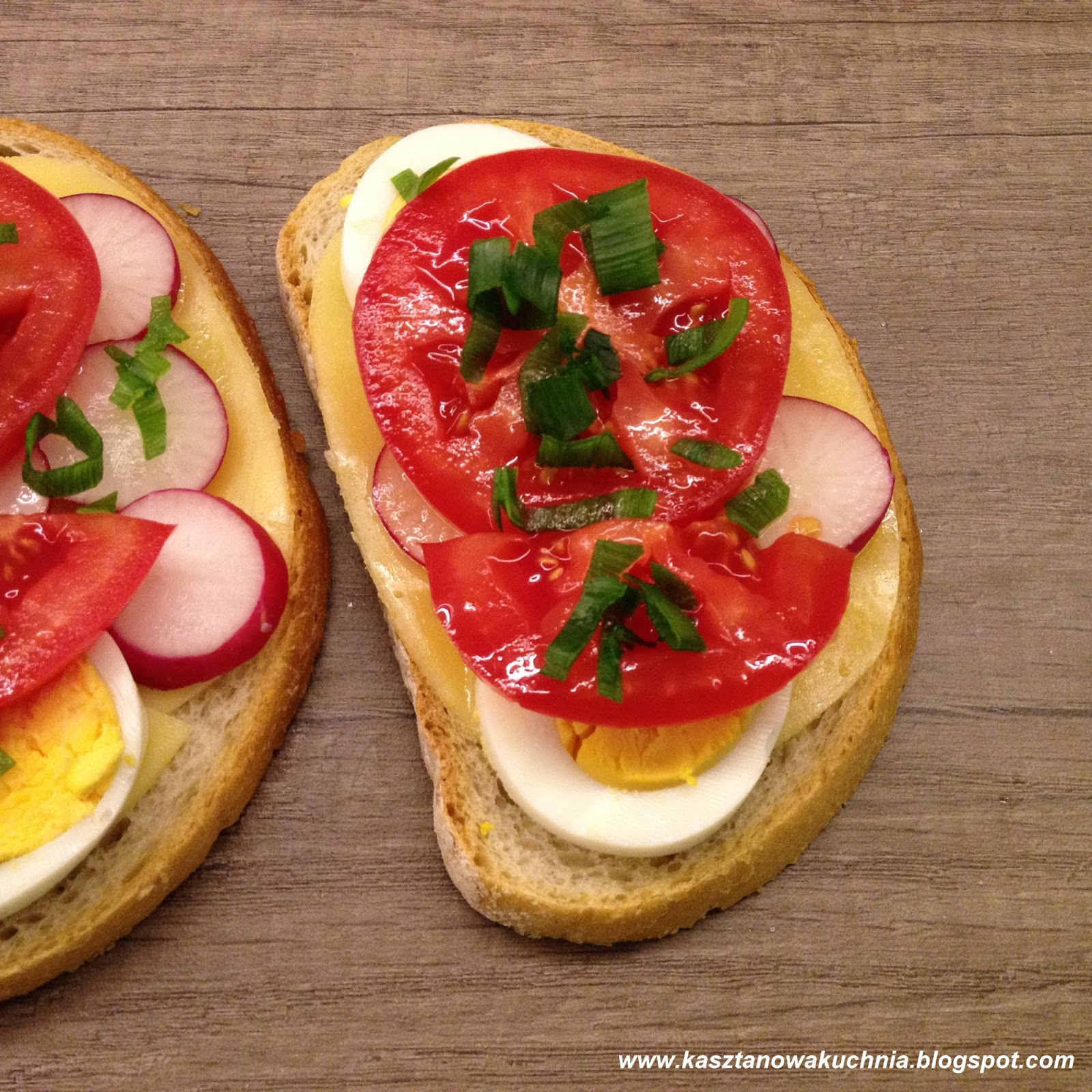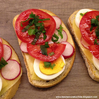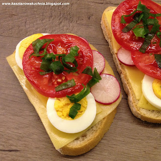 Dziś zapraszam na kanapki z serem, jajkiem, rzodkiewką, pomidorem i szczypiorem.