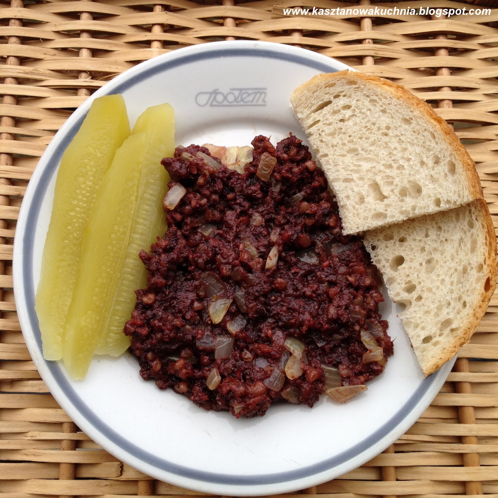 Wołu, wieprza, albo barana kiedy zabiją, to najmniejszej krople krwie nie zepsują, ale ją wytoczą w naczynie; namieszawszy w to krup jęczmiennych, albo tatarczanych, to tym kiszki owego bydlęcia nadzieją, razem w kotle uwarzą i osnują to wieńcem na wielkiej misie i tak to na stole stawiają przy każdom obiedzie i jedzą za wielki specyjał...".