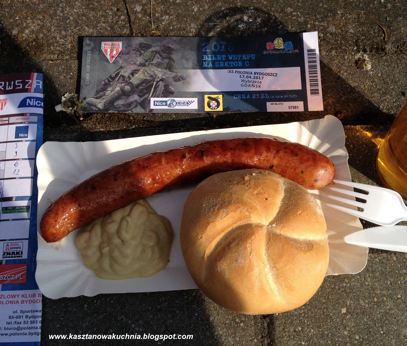 Cześć =) 3 tygodnie temu byłem, jak przystało na meczu żużlowym Polonii Bydgoszcz, która jeździła z Wybrzeżem Gdańsk. Na takie okazje najlepszy jest tzw. zestaw meczowy, czyli kiełbaski z grilla z pieczywem i musztardą oraz zimne piwo.