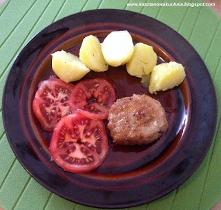 6) Ziemniaki i warzywa polewamy tłuszczem pozostałym ze smażenia kotletów.