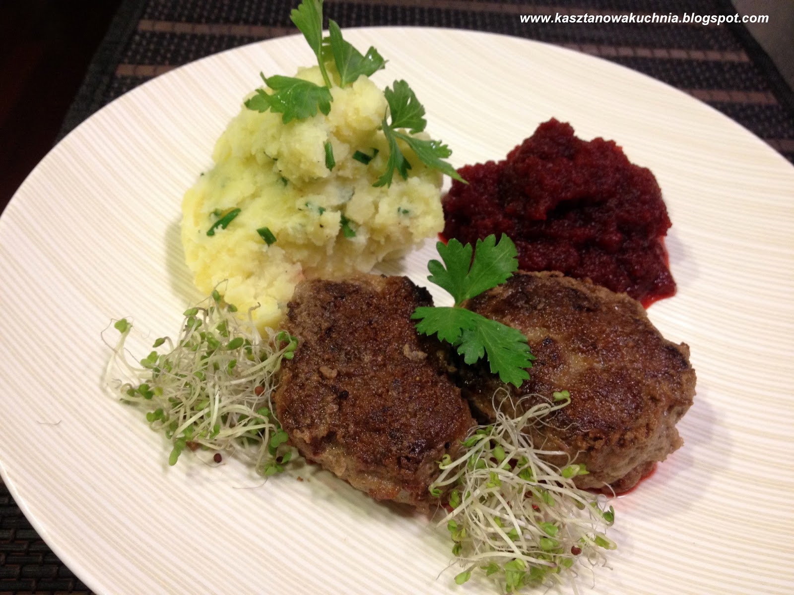Cześć =) Dziś Kasztanowa Kuchnia zaprasza na kolejną wersję kotletów mielonych. Tym razem są to nieduże kotleciki z mielonej wołowiny, przyprawione sporą ilością czosnku i majeranku. Wybornie smakują na ciepło, jak również na zimno =)