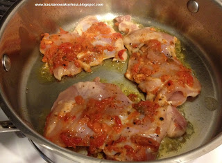 ljutenica, zrobiony z cebuli, papryki, bakłażana i pomidorów. Sos ten dostępny jest cały rok do kupienia gotowy w słoikach, a w okresie letnim, gdy natura obfituje w papryki i bakłażany, można przygotować go samemu. Połączenie żywego smaku sosu i czosnku z delikatnym mięsem kurczaka okazało się wyjątkowo smakowite =)