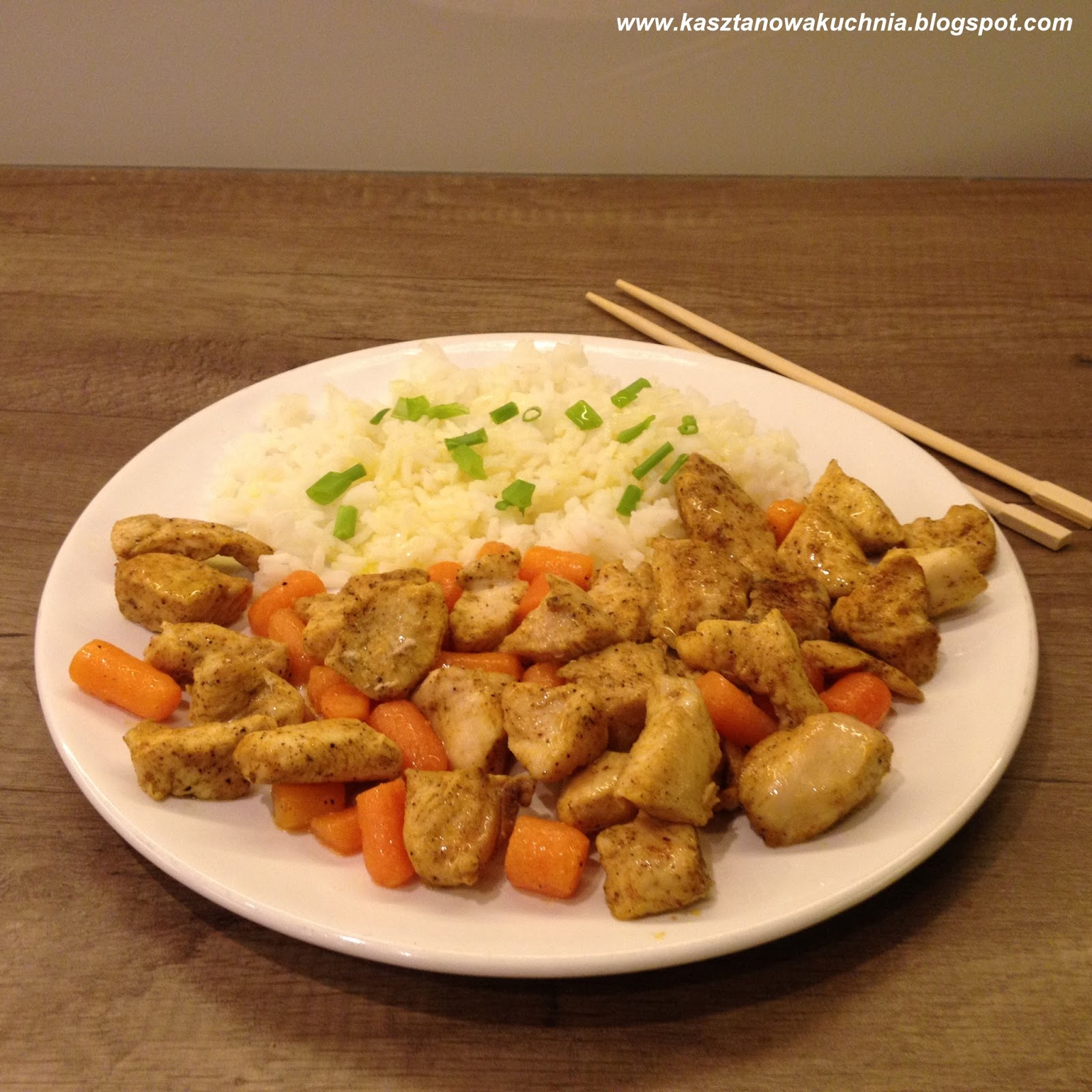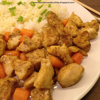 Filet z piersi kurczaka, przedstawiony poniżej, to filet pokrojony w kostkę, który usmażyłem z dodatkiem marchewki i podałem z ryżem.