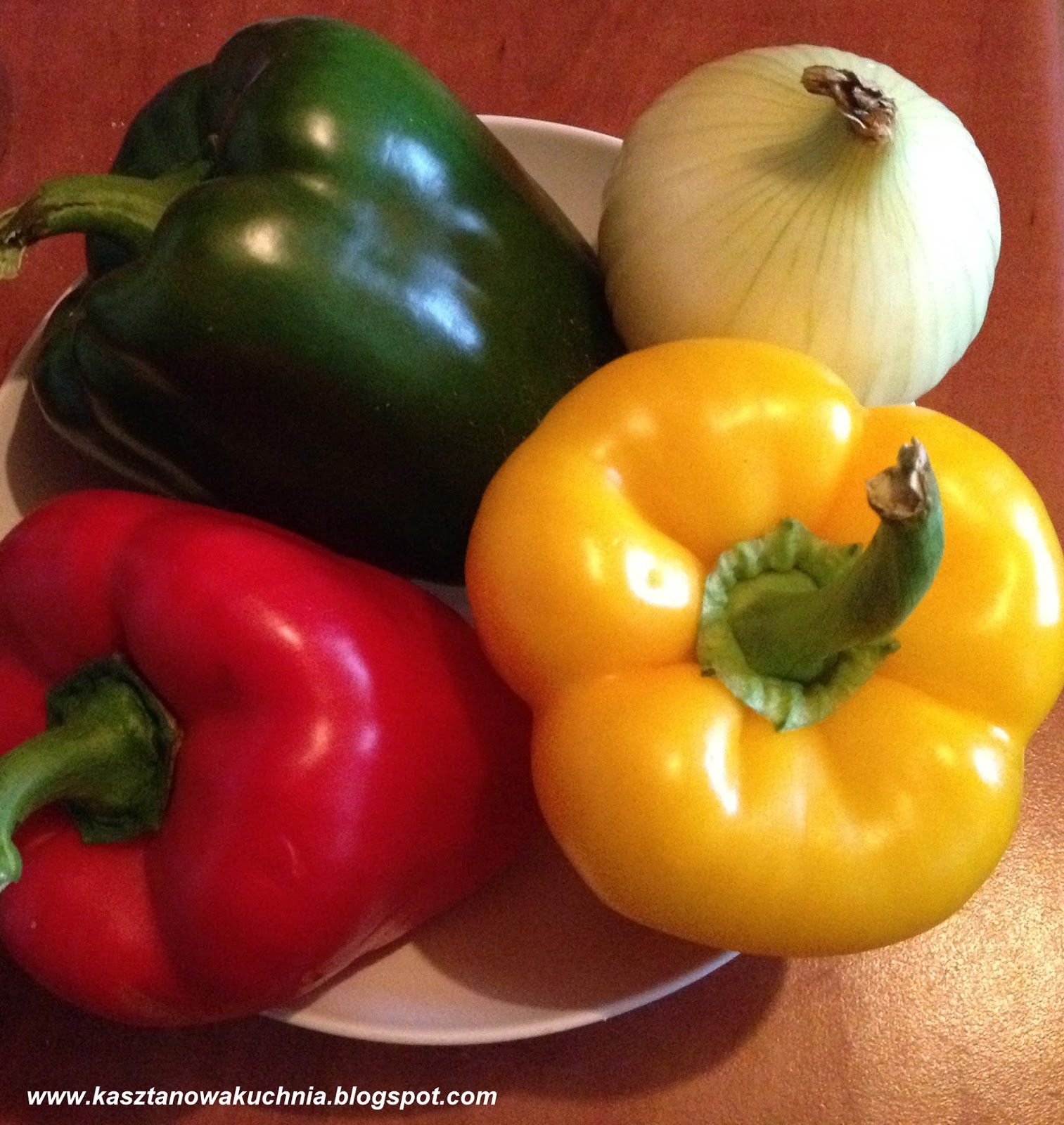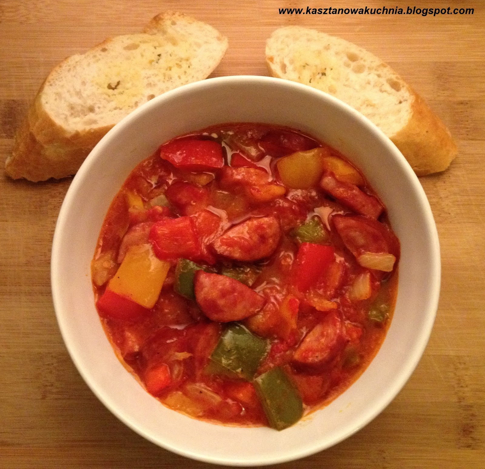 Jeśli chodzi o dodatki, to może być to kiełbasa, ale dobra gatunkowo (nie tłusta). Co do rodzajów papryki, to panuje tu zupełna dowolność. Ja dodaję czerwoną, zieloną i żółtą.