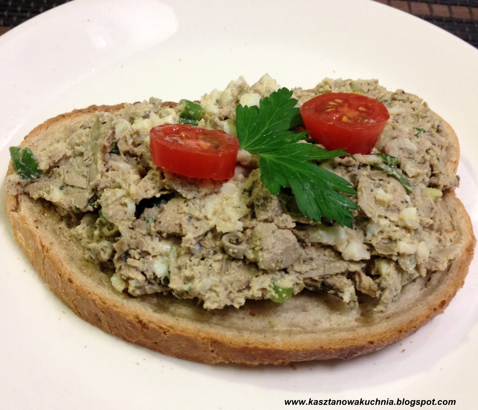 Dziś zapraszamy na smakowitą pastę kanapkową z wątróbek gęsich. Można je zastąpić innymi wątróbkami z drobiu, ale gęsie będą najlepsze. Wątróbki przed usmażeniem marynujemy w ziołach, dzięki czemu gotowa pasta ma ciekawszy smak. Bardzo dobrze smakuje podana na pieczywie, krakersach, a także jako dodatek świeżych warzyw takich jak sałata, pomidory, ogórki (również kiszone) =)