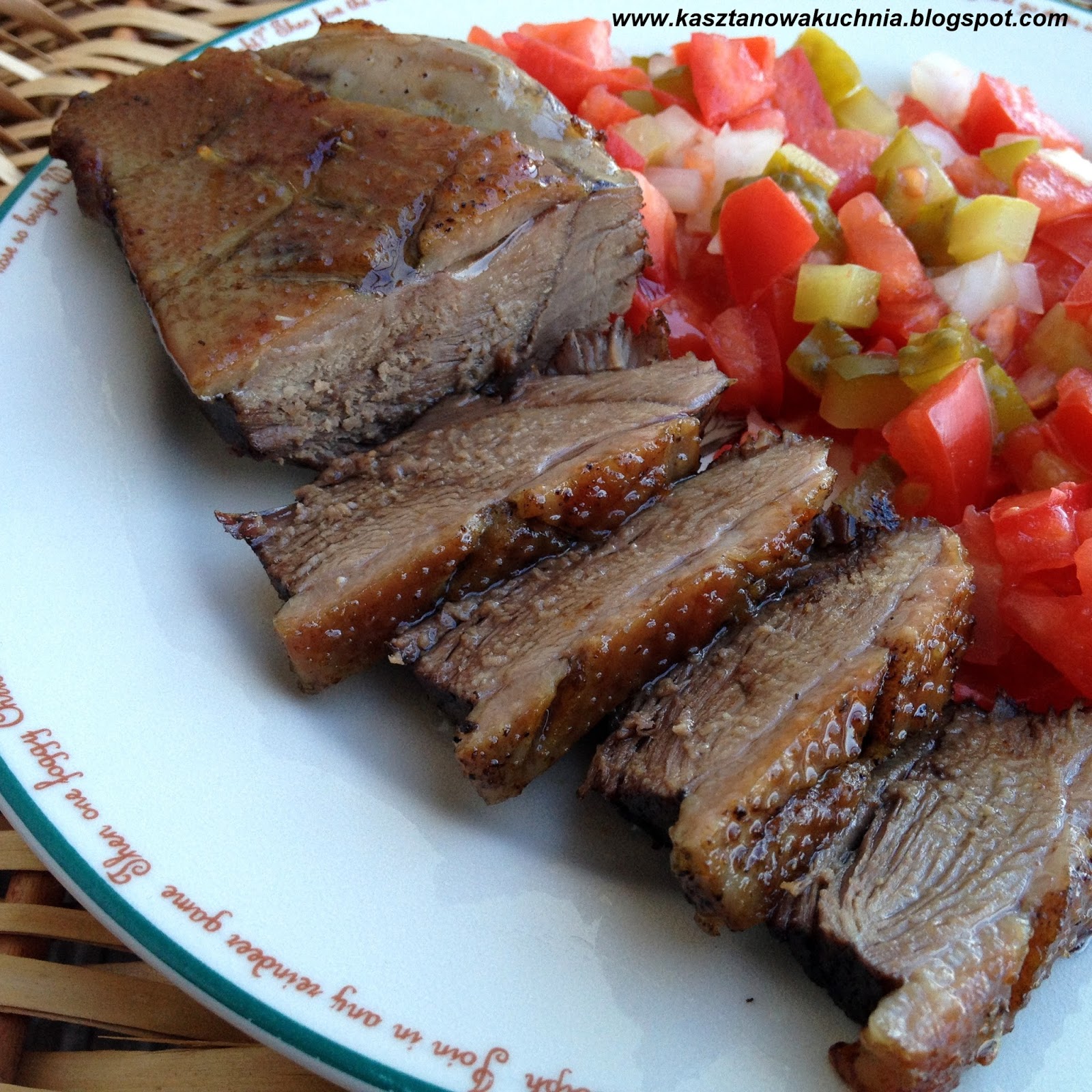 W celu upieczenia piersi gęsiej ze skórą, należy uprzednio wytopić z tej skóry tłuszcz.