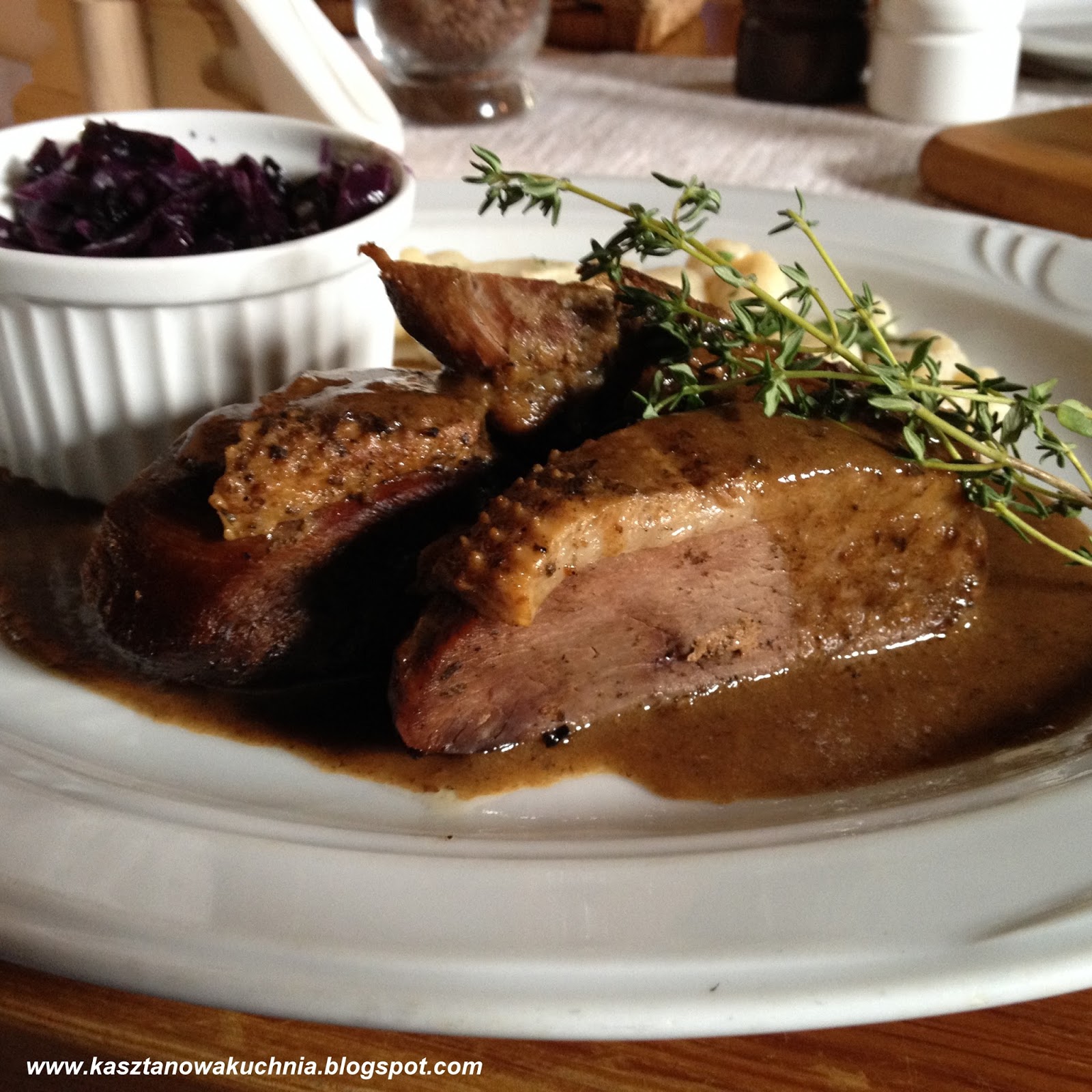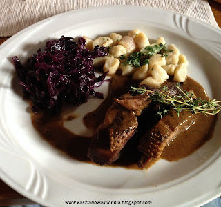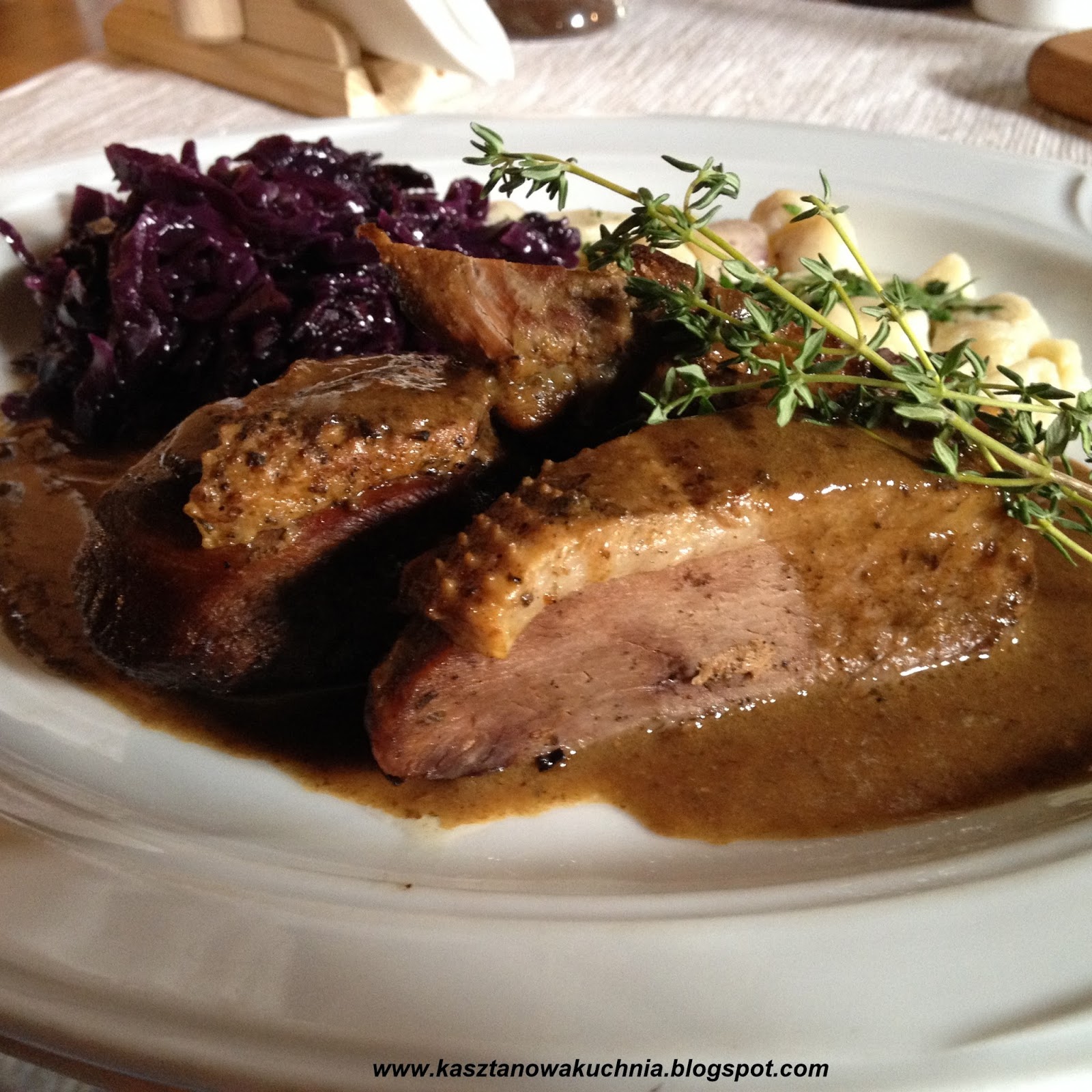 Cześć =) Dziś zapraszam na pieczona pierś z gęsi, którą zjadłem w bydgoskiej restauracji - "Stary Port 13". Gęś podana w sosie śliwkowym, z kluskami i czerwoną kapustą.