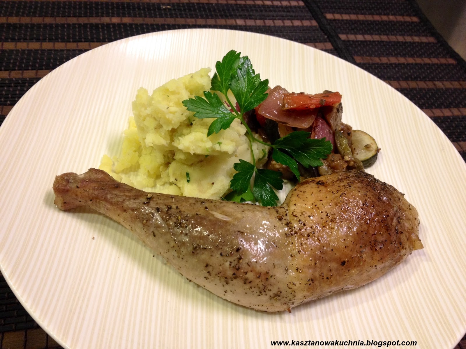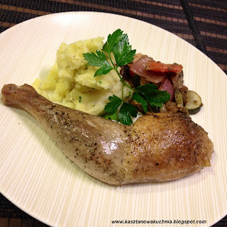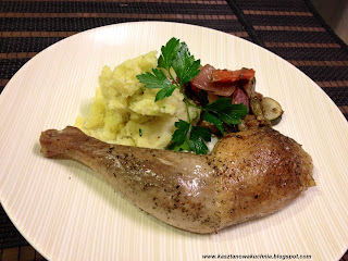 Dziś Kasztanowa Kuchnia zaprasza na pieczone udka z perliczki. Sposób pieczenia jest bardzo podobny do udek z kurczaka, lecz mięso perliczki ma nieco bardziej zwięzła strukturę, co czyni je nieco, ale tylko niewiele, twardszym, więc należy je piec trochę dłużej niż kurze udka, mimo, że są podobne wielkością. Po upieczeniu udka perliczki są miękkie i soczyste, z chrupiącą skórką =)