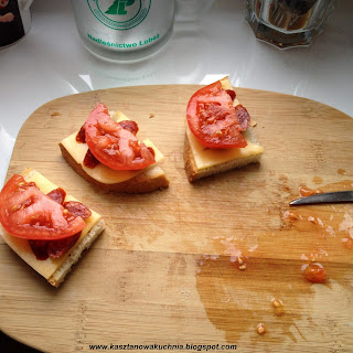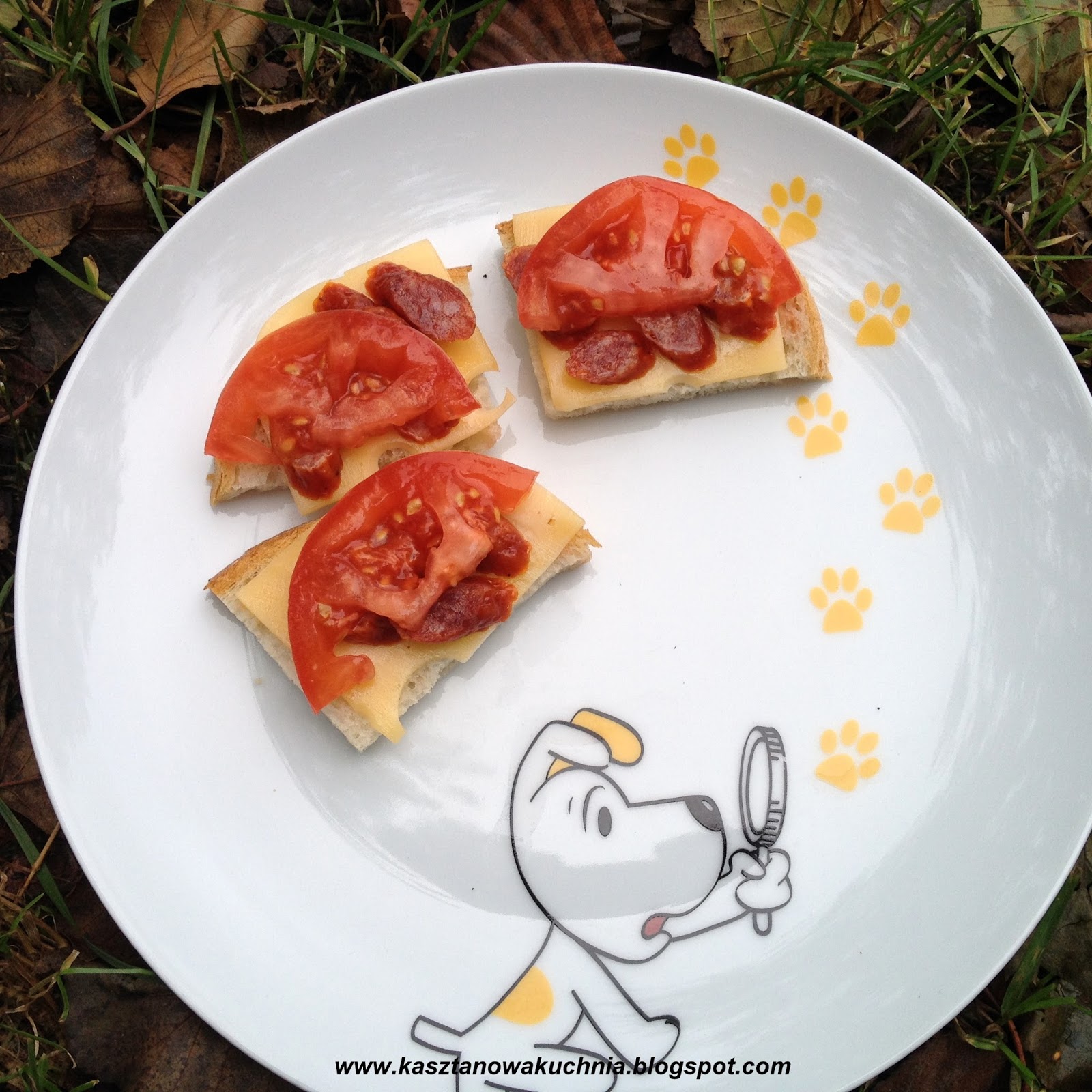 Cześć =) Z okazji mojego powrotu na Kujawy i zamieszkania w Bydgoszczy, zaprosiłem moich rodziców na mały, jesienny piknik nad rzeką Brdą, nad którą położone jest moje mieszkanie. Piknik zorganizowałem po jej drugiej stronie. Atmosfera była naprawdę fantastyczna i wesoła. Piknik składał się z kanapek takich jak u babci Trudzi (dla każdego po jednej), czyli kromek z serem, kabanosem i pomidorem oraz herbaty z termosu.