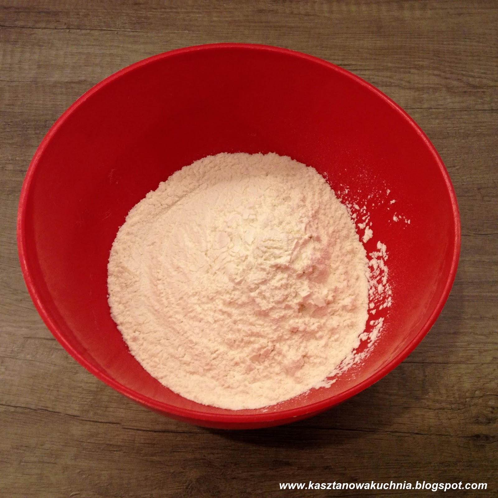 1) Do miski wsypujemy mąkę.