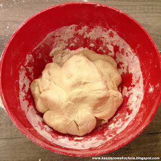 4) Wyrabiamy ręką ciasto, aż powstanie jednolita kula (jeżeli ciasto się lepi, to dodajemy mąki i dalej wyrabiamy).
