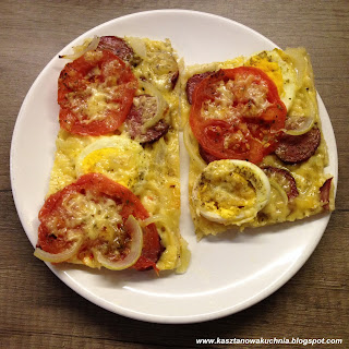 Dzisiaj Kasztanowa Kuchnia zaprasza na pizzę wykonaną podobnie, jak przed laty w Szczecinie, z kanapkowymi składnikami Agnieszki, zaś ciastem według receptury Maćka =)
