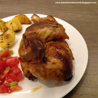 Cześć =) Dziś zapraszam na kurczaka pieczonego w całości, a konkretnie na pół kurczaka, czyli udko, pierś i skrzydełko.