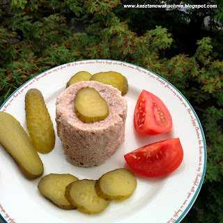 10) Zebrany pod cedzakiem tłuszcz wlewamy do rozdrobnionego mięsa (zachowujemy około pół szklanki na wierzch) i mieszamy.