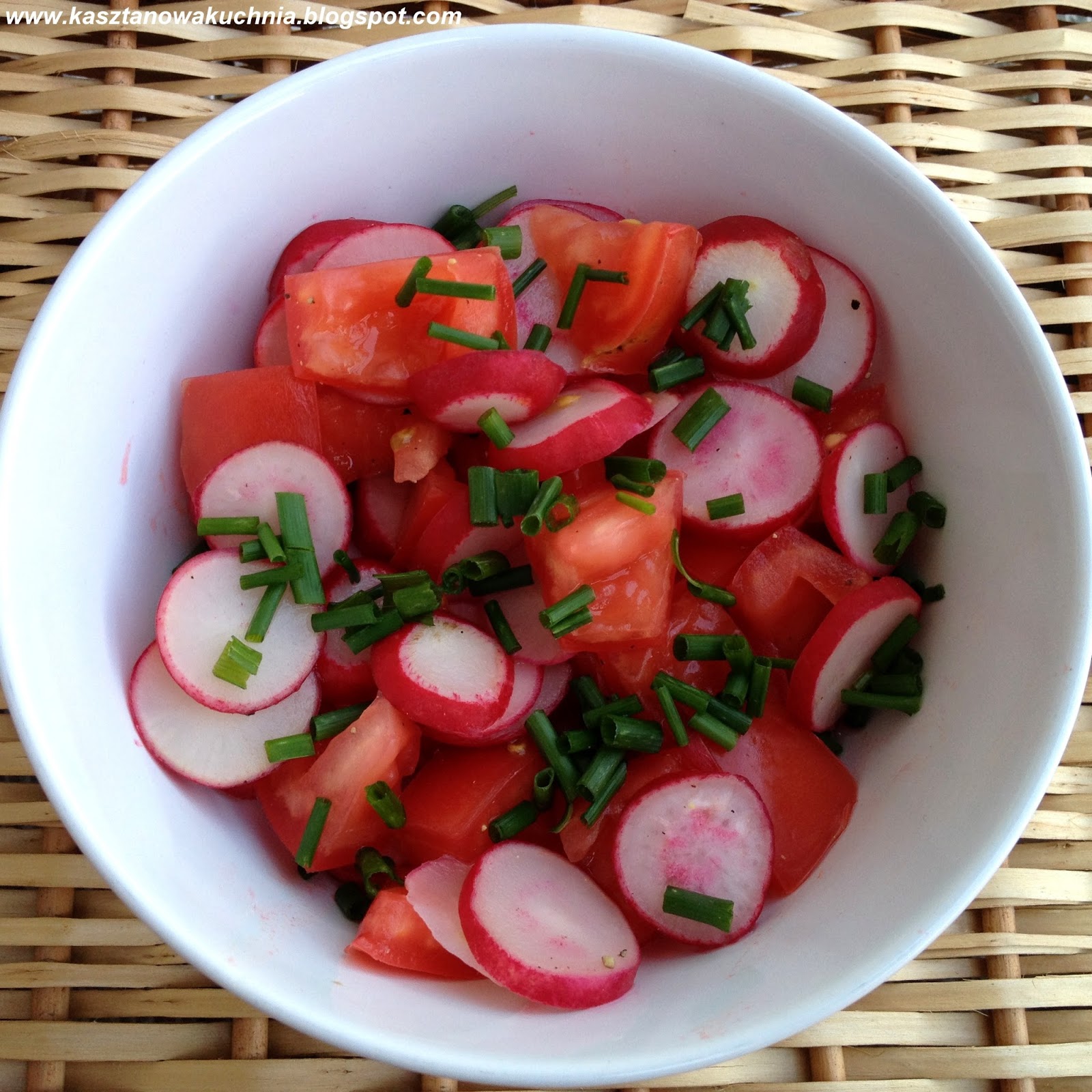Cześć =) O takich sałatkach mówi się, że są proste, ale smaczne. Sałatka z pomidorów, rzodkiewki i szczypiorku, to bardzo prosty i szybki w wykonaniu dodatek do dań obiadowych, jak i potrawa do zjedzenia samodzielnie.
