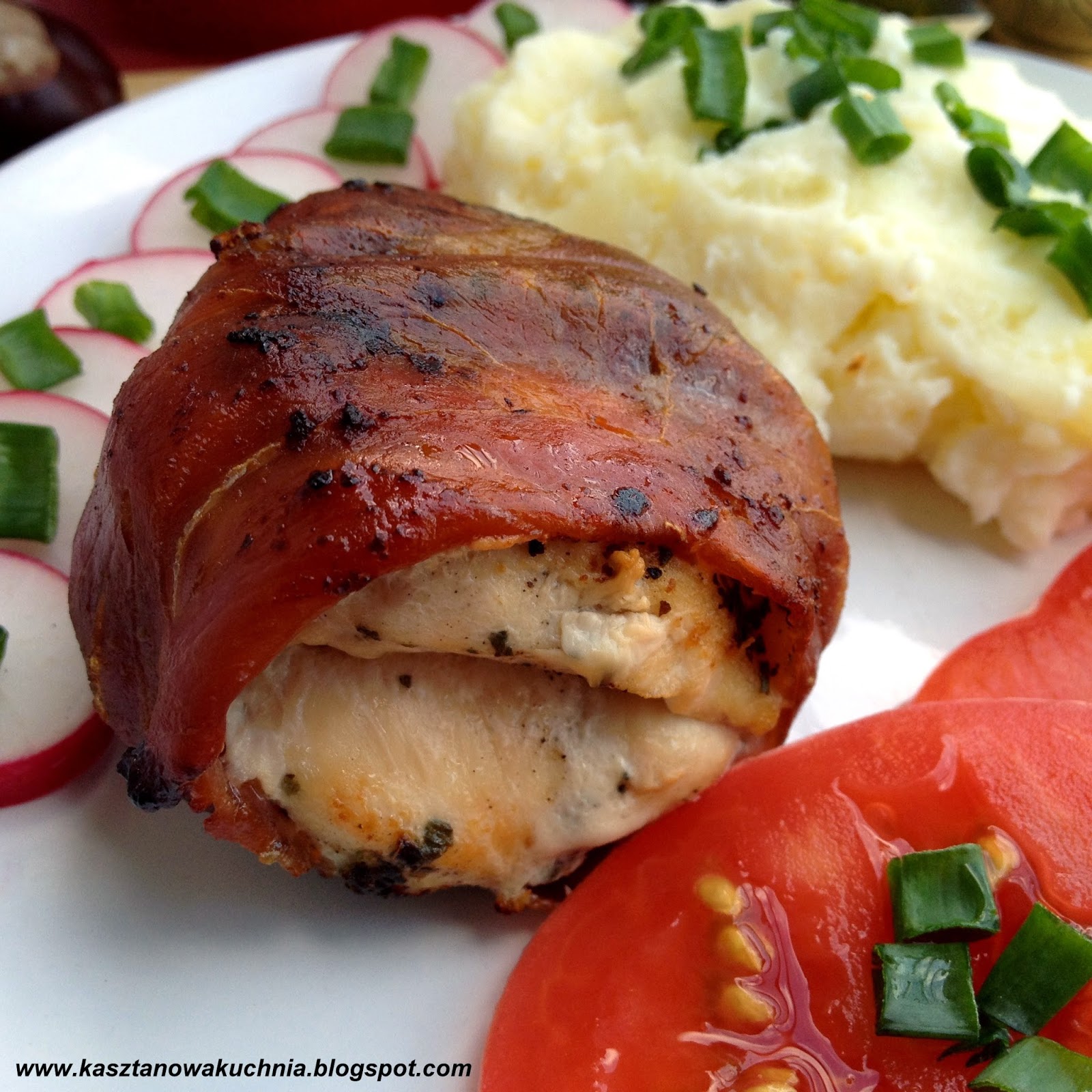 saltimbocce wykonaną z filetu z piersi kurczaka, podaną z ziemniakami