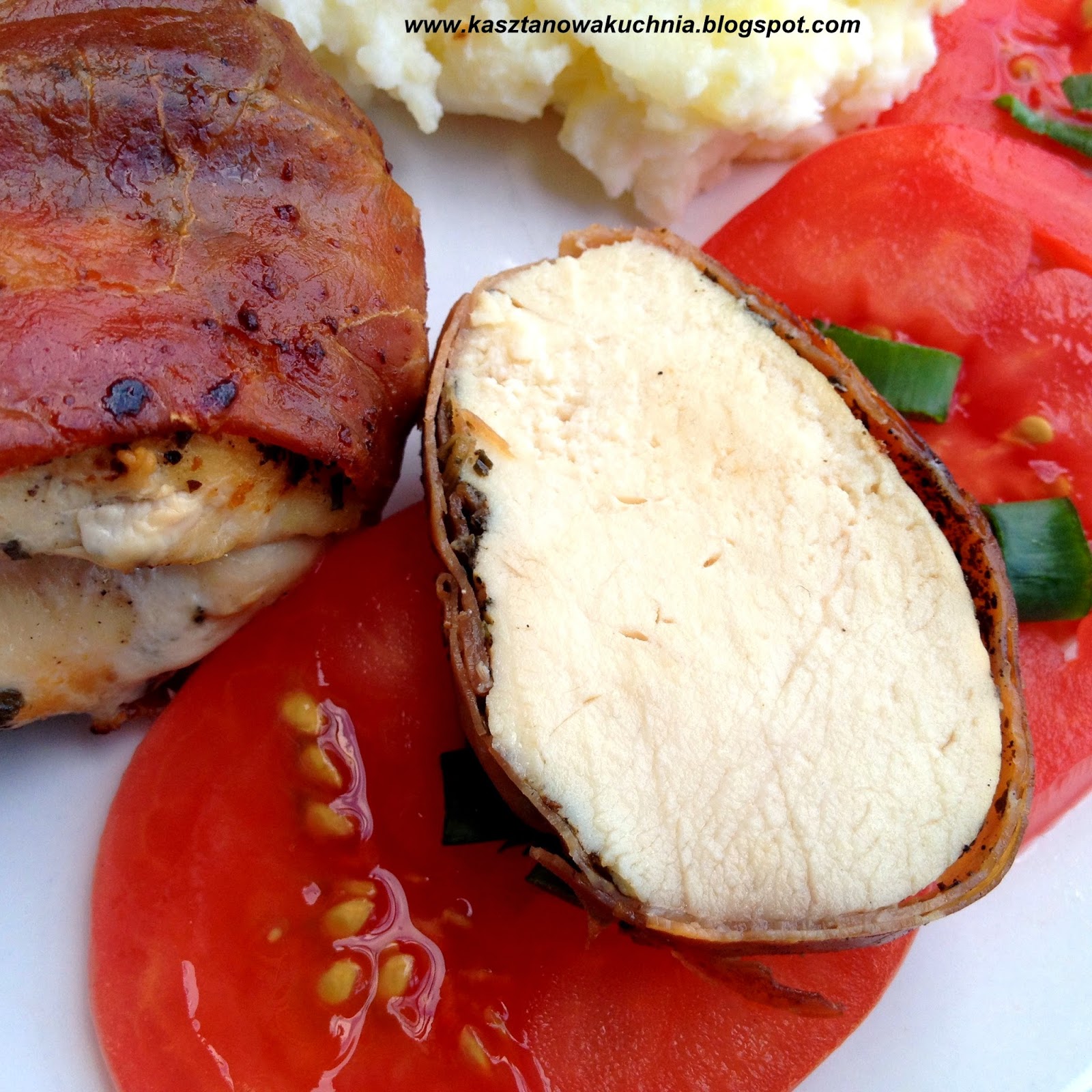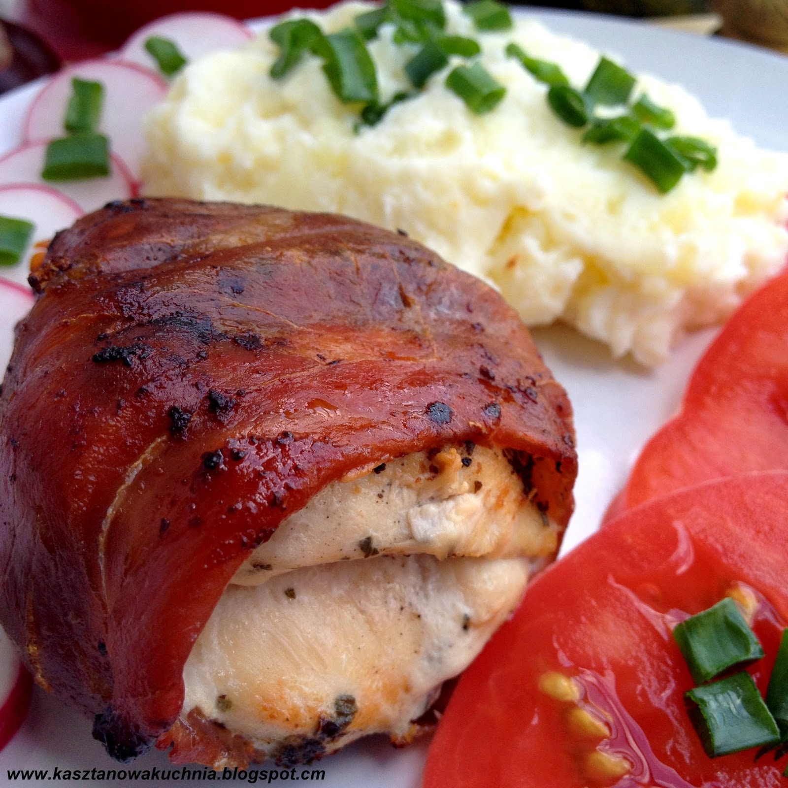 saltimbocce wykonaną z filetu z piersi kurczaka, podaną z ziemniakami