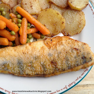 1) Filety z sandacza posypujemy solą i pieprzem, a następnie obtaczamy w mące.