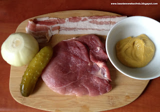 W mojej rodzinie najczęściej jada się zrazy wołowe, ale także wieprzowe, które przedstawiam w tym wpisie. Są to zrazy z szynki wieprzowej, nadziewane wędzonym boczkiem, ogórkiem kiszonym i cebulą. Z powodzeniem można również użyć schabu lub karkówki, bo sama procedura przygotowania właściwie niczym się nie różni.