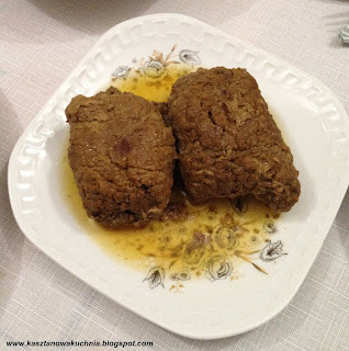 6) Zrazy dusimy na małym ogniu przez około 2 godziny (lub lekko więcej), aż mięso stanie się miękkie, w razie potrzeby dodając w trakcie odrobinę wody, żeby się nie przypaliły.