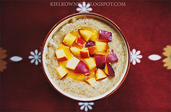 Dziś len zwyczajny w towarzystwie miodu i mango zawitał u nas na śniadaniu w postaci puddingu: