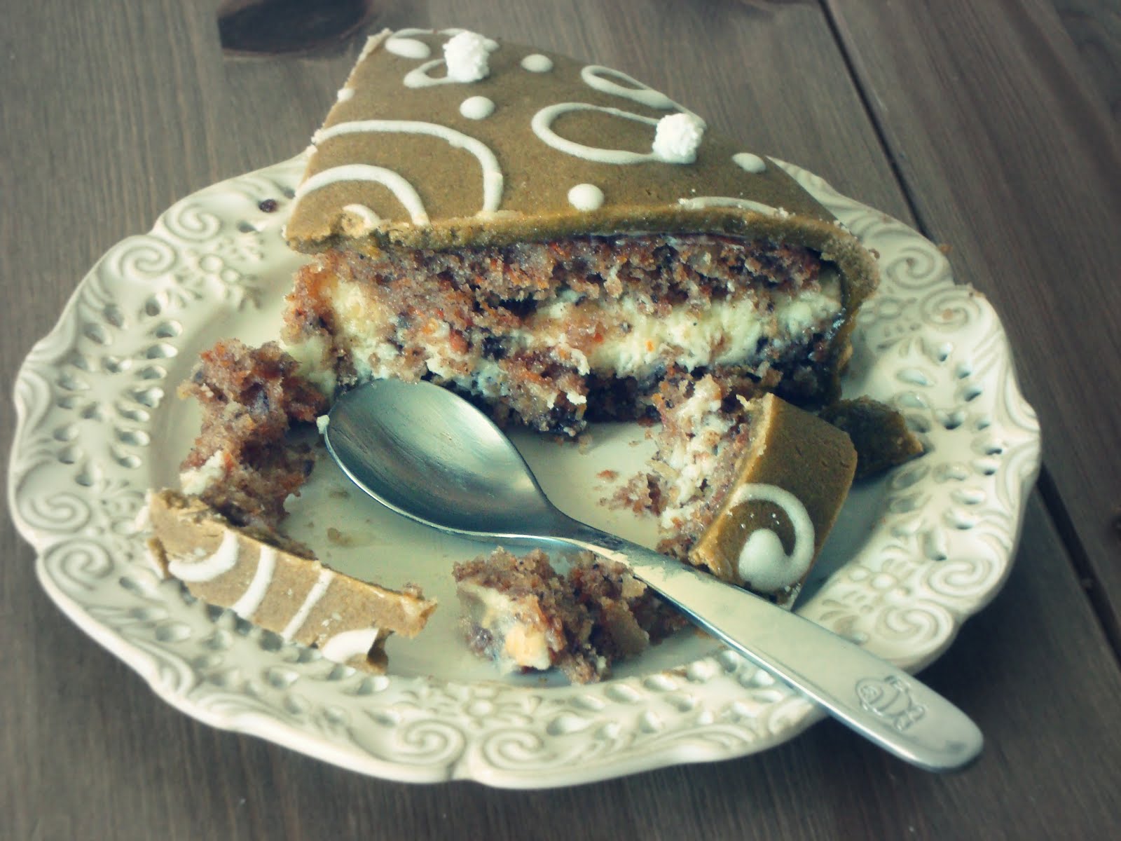 Ciasto marchewkowe pod brązową kołderką z lukru