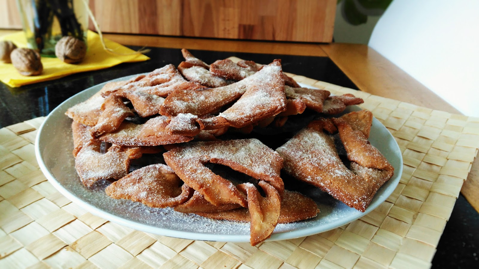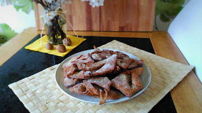 Pączki nie do końca mnie zadowoliły, a to dla tego, że faworki za mną chodziły. Nawet nie pamiętam kiedy je ostatnio jadłam. Chyba z 10 lat minęło. Najwyższa była więc na nie pora. Lubię je bo są takie chrupiące i maja ten smaczek smażonego tłuszczu:) mniam. Ciężko poprzestać na jednym.