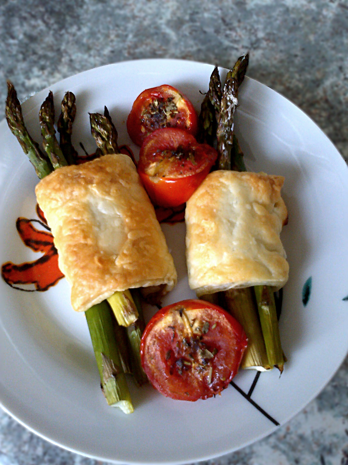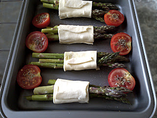 Składniki ciasto francuskie, 275 g jajko, 1 duże ricotta, 100 g orzechy włoskie, 4 szt. sól, pieprz, zioła prowansalskie świeży tymianek zielone szparagi, 4 grube lub 8 cienkich Sposób przygotowania Ciasto w temperaturze pokojowej podzielić na 4 części...