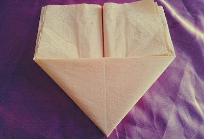 Papierową serwetkę złóż na pół (złącz górne końce serwetki z dolnymi)