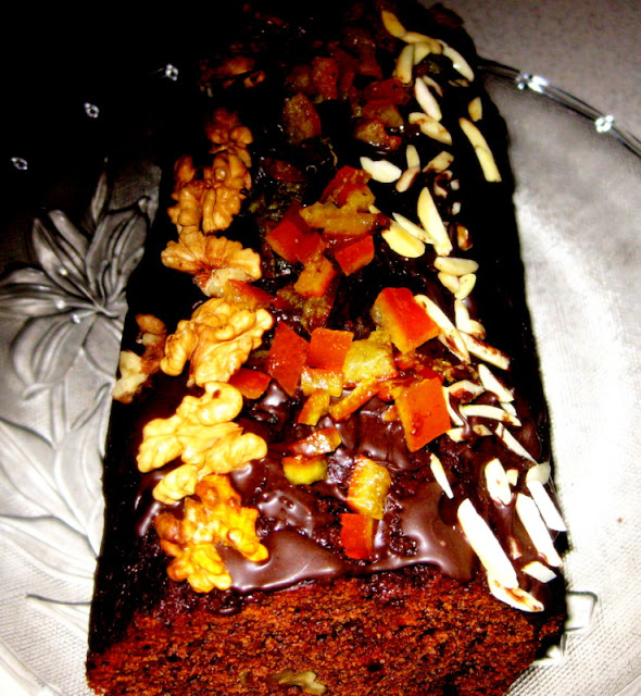 Piekłam 60 min. w temp. 180*C. Pierniki wystudziłam po czym zawinęłam w lnianą ściereczkę i folię spożywczą i włożyłam do lodówki na tydzień.Przed podaniem udekorowałam polewą, skórką pomarańczową orzechami i słupkami migdałów.