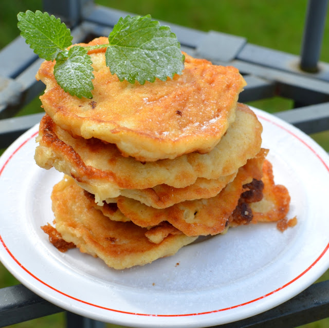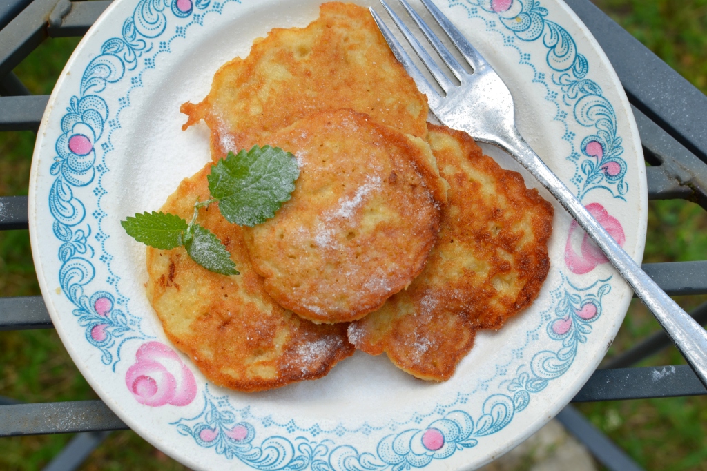 Na patelni rozgrzewamy olej i łyżką nakładamy niewielkie porcje ciasta. Placuszki smażymy na złoty kolor po mniej więcej minucie z każdej strony.