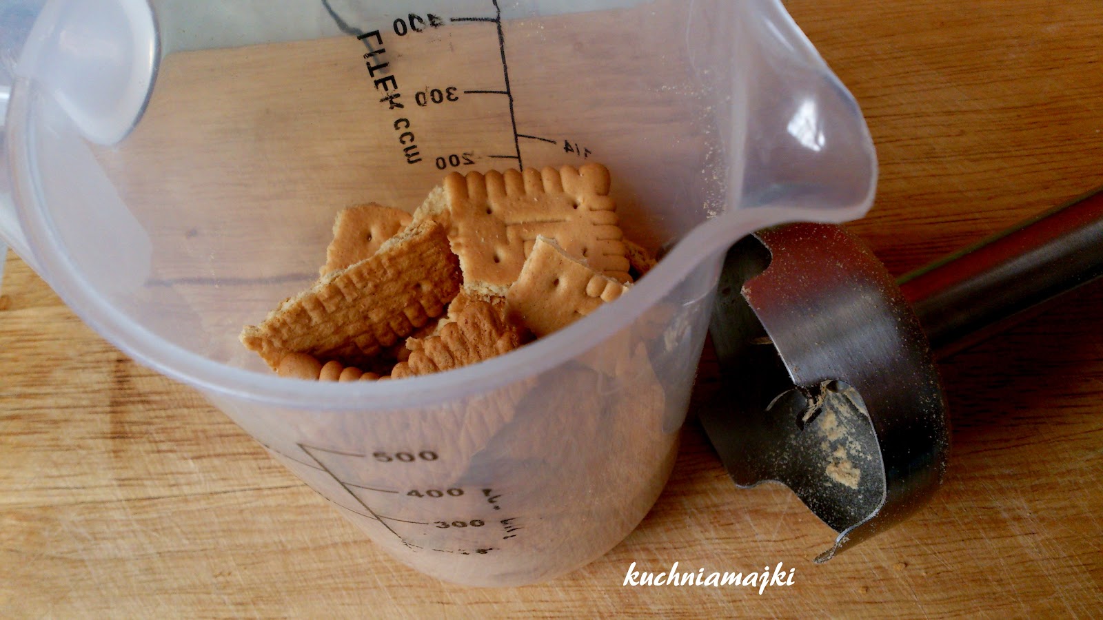 - Herbatniki rozgniatamy tłuczkiem lub miksujemy także blenderem.