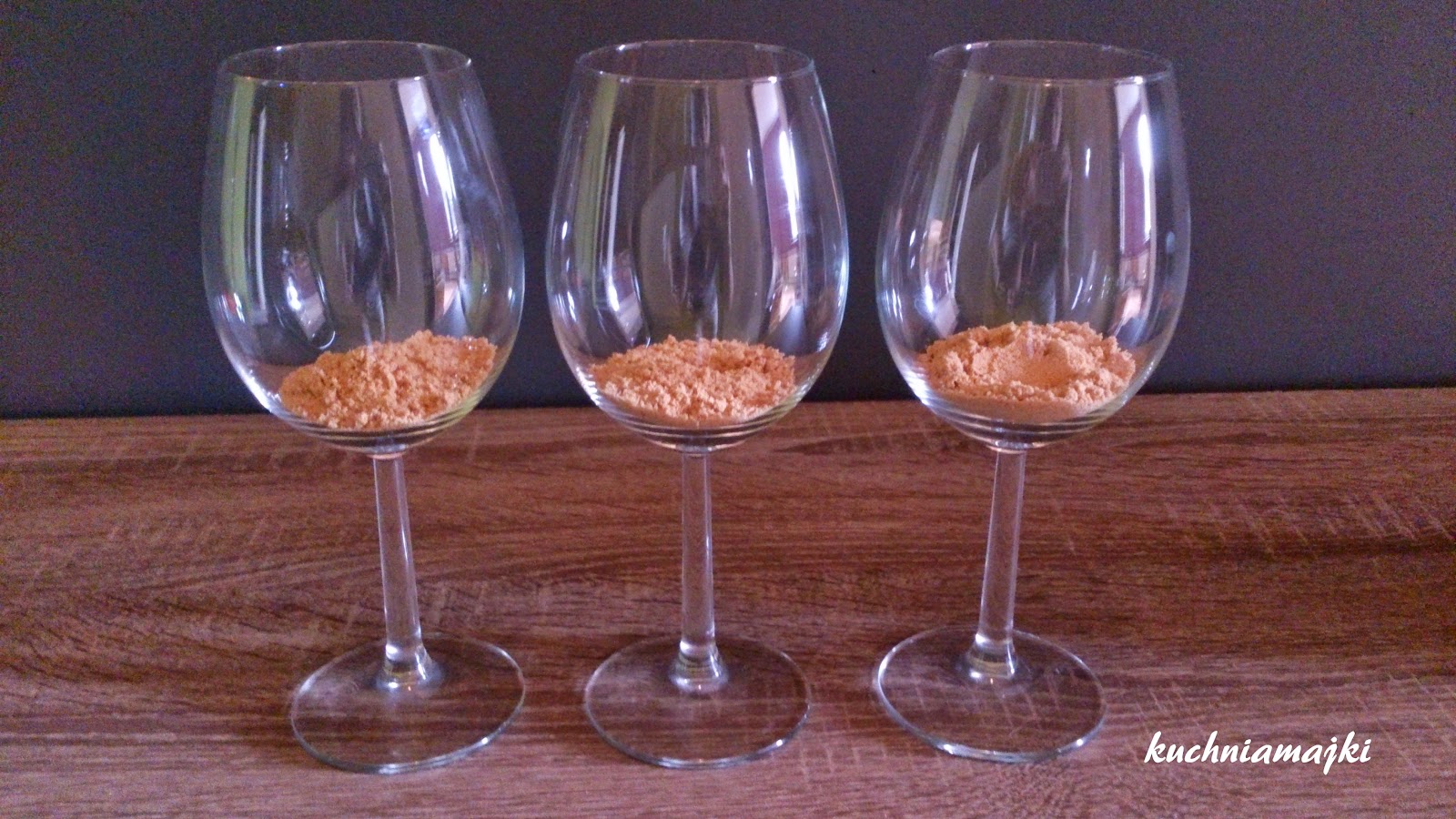 - Gotowe produkty wkładamy naprzemiennie do kieliszków od wina :