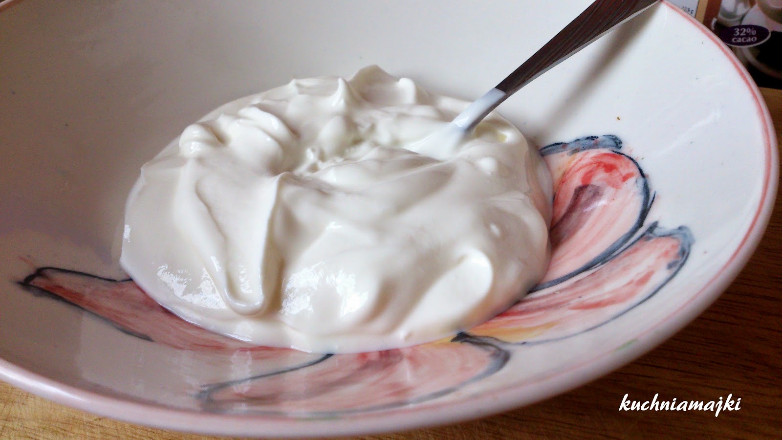 - Jogurty greckie mieszamy z cukrem pudrem.