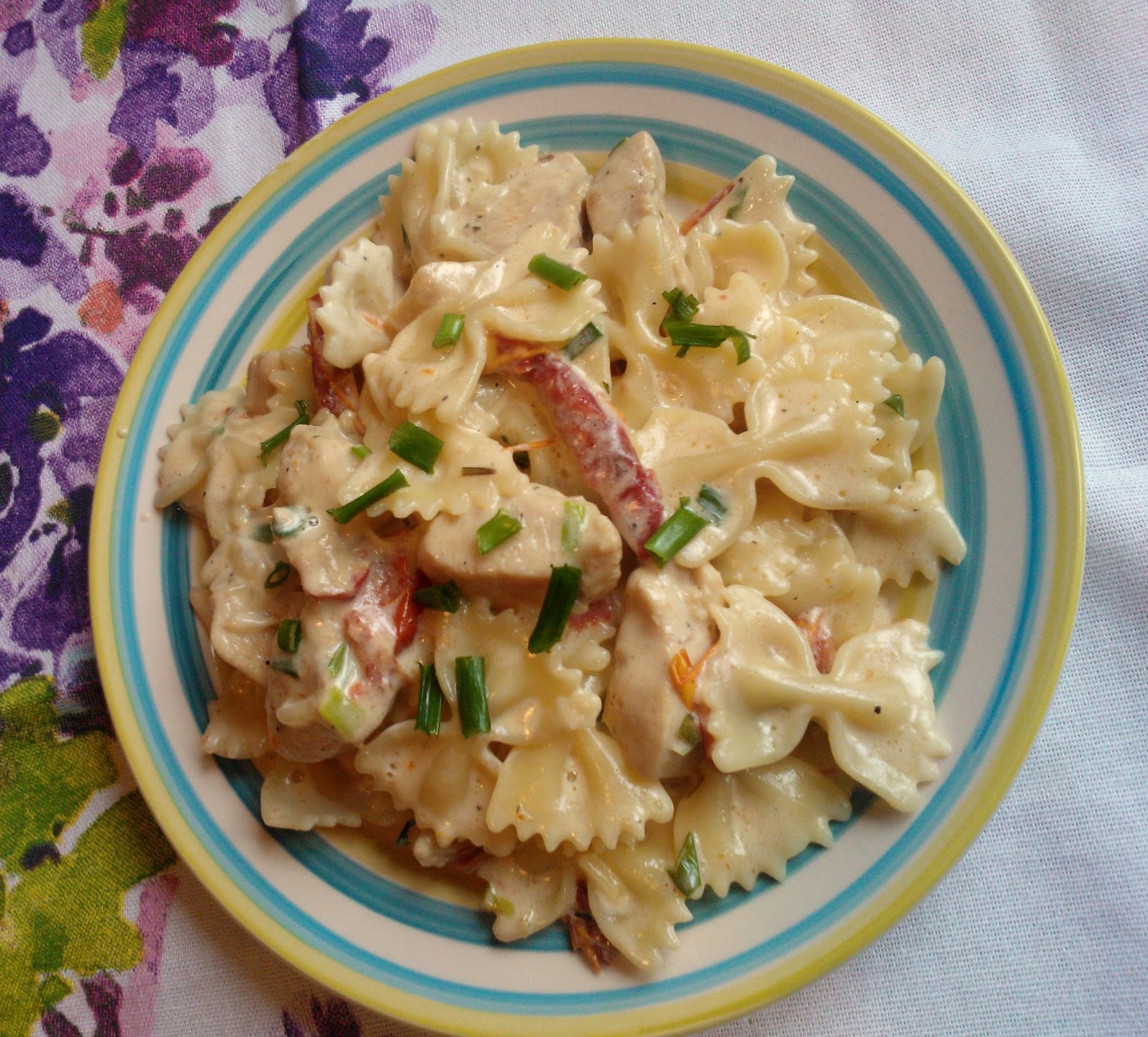 Makaron farfalle z kurczakiem i suszonymi pomidorami..